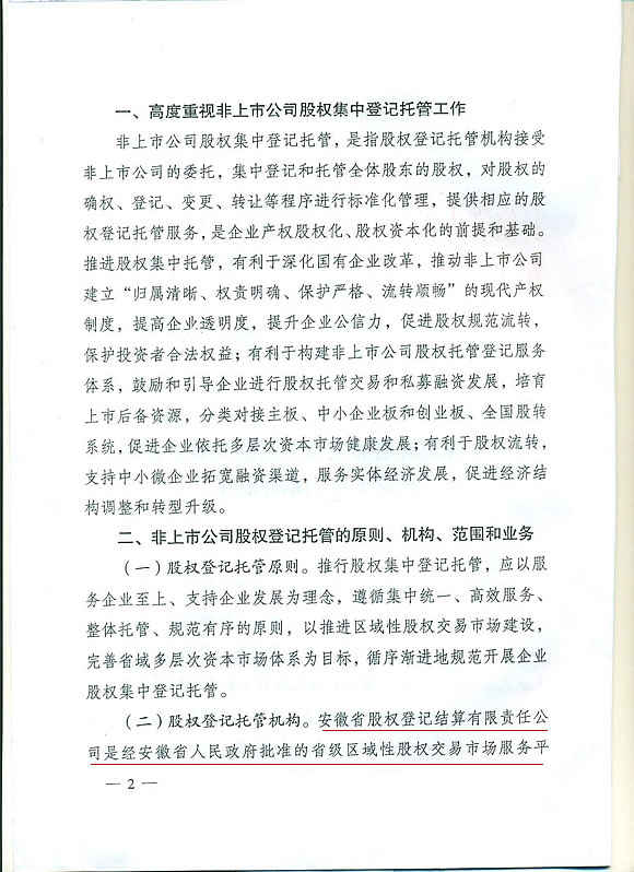 關于規范開展非上市公司股權集中登記托管的指導意見(皖金[2014]64號])